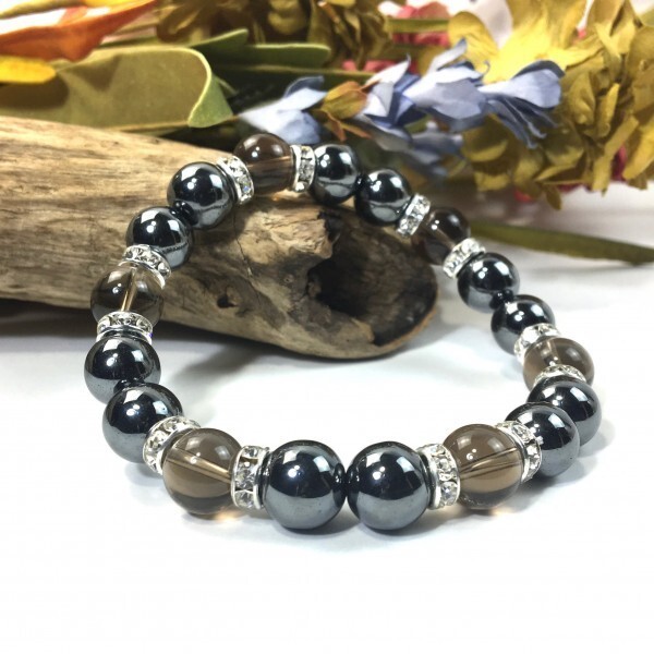 > ヘマタイト×スモーキークォーツ パワーストーン ブレスレット 天然石ブレス (シルバー) 10mm メンズ・レディース 健康運 勝利 還暦祝い