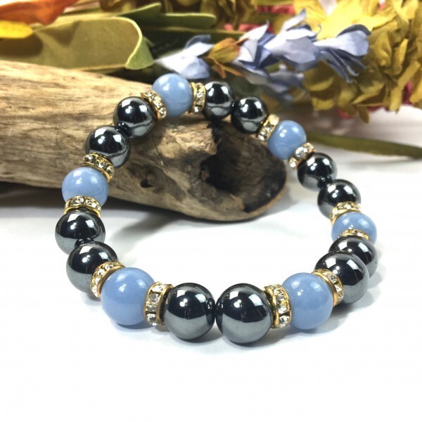 > ヘマタイト×エンジェライト パワーストーン ブレスレット 天然石ブレス (ゴールド) 10mm メンズ・レディース 健康運 勝利 還暦祝い