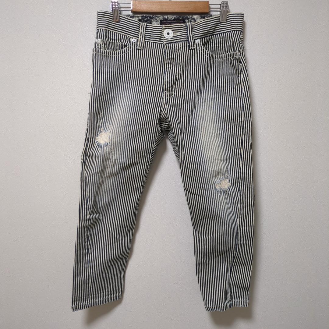 - リエンダ(S)ダメージストライプクロップドデニムパンツ*ビンテージ*伸縮性