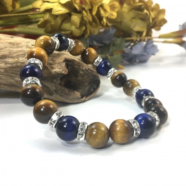 > タイガーアイ×ブルータイガーアイ パワーストーン ブレスレット (シルバー) 10mm メンズ・レディース 金運 仕事運 願望成就