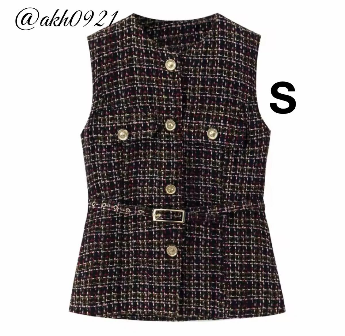 - 新品未使用★2025 A/W 秋新作★vintage ヴィンテージ レトロ ツイード ベスト トップス Sサイズ レディース★ZARA 好きな方に