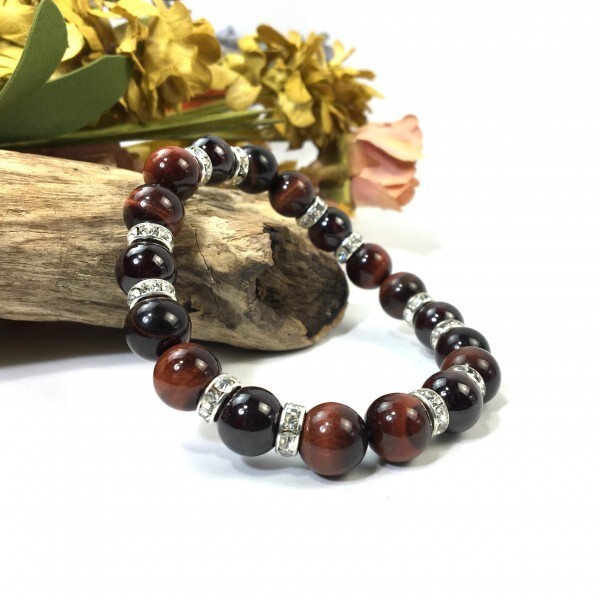 > レッドタイガーアイ×ガーネット パワーストーン ブレスレット 天然石 10mm (シルバー) メンズ・レディース 金運 仕事運 願望成就