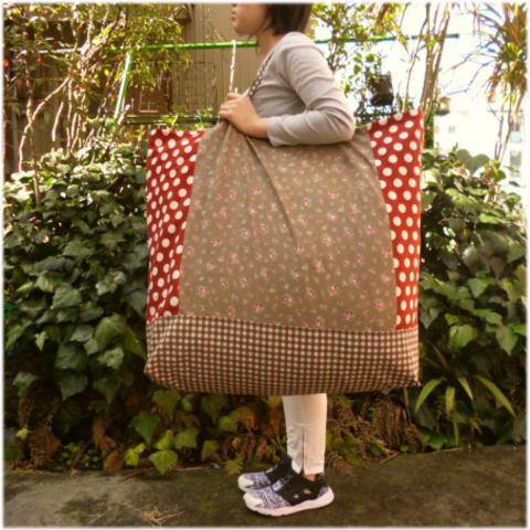 - 入学、入園!3200円ミニローズ(カーキ)特大布団バッグ手作り小物