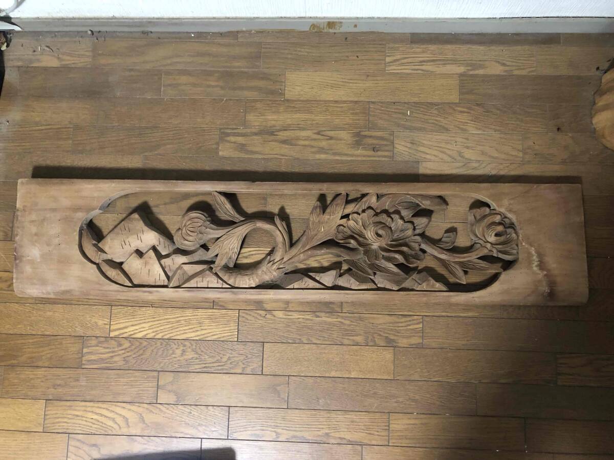 - 【精巧】「和家具」「古民具」木製 彫刻 飾り板 欄間 骨董 木彫 欄間 時代物 彫刻欄間 古民具 和室装飾