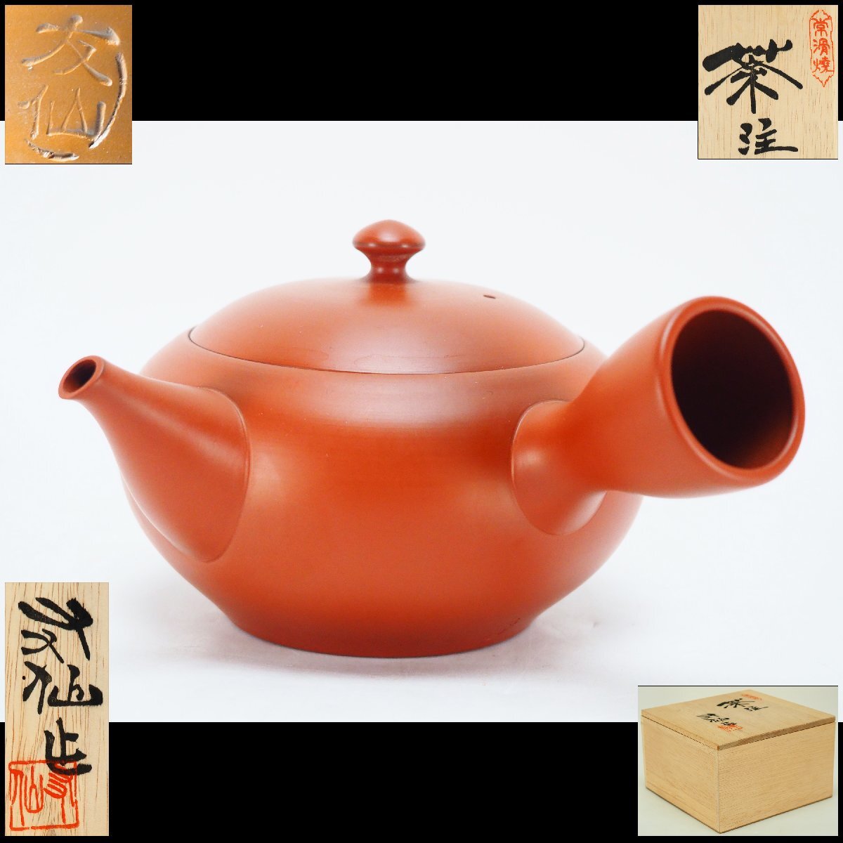 - 【治】『小西友仙』作 常滑焼 横手急須☆共箱 茶注 茶瓶 朱泥 (検索:吉川雪堂 山田常山 山田宝生) 本物保証 BCA19