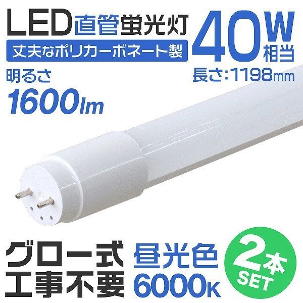 - 【2本セット】1年保証付き 直管 LED蛍光灯 40W形 120cm 工事不要 グロー式 高輝度SMD 照明 LEDライト 昼光色 明るい 店舗 事務所