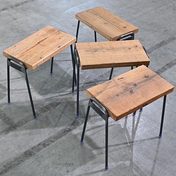 - 展示品 杉山製作所 12万「ファクト」スツール 4脚 杉古材 無垢 アイアン脚 インダストリアル ブルックリンスタイル FACT_アクタス コサイン