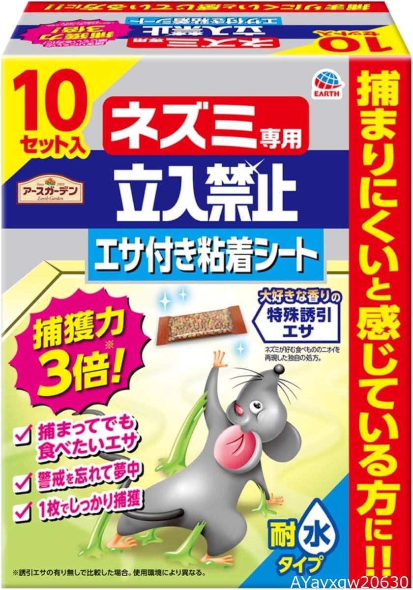> アースガーデン ネズミ専用立入禁止 エサ付き粘着シート 10セット入 防水タイプ 害獣対策 鼠 駆除 天井裏 床下 倉庫 玄関 庭