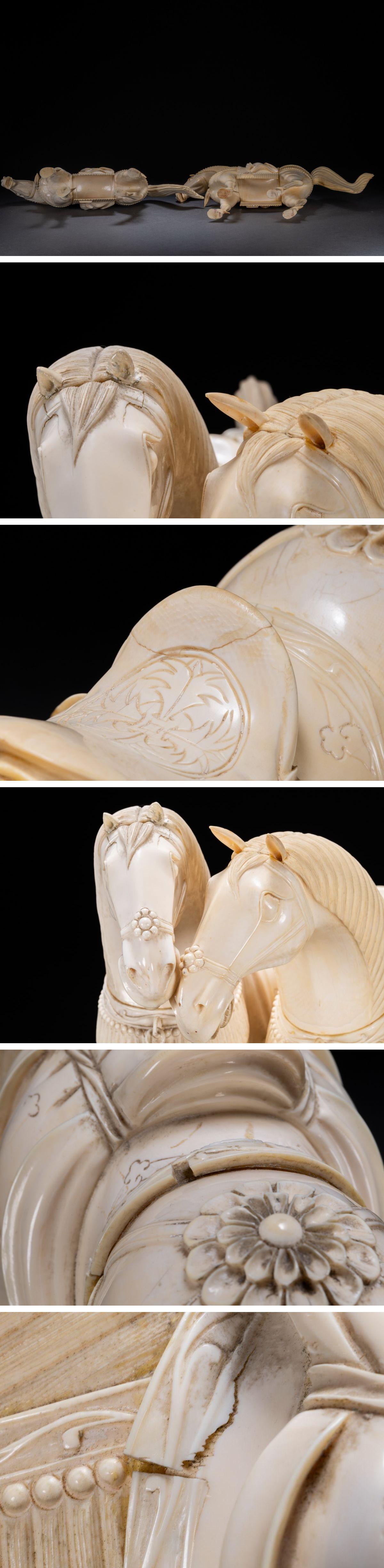 > 【雲錦】某有名オークション購入 時代物 特殊白材 巨大唐馬二匹6㎏ 古置物 古擺件 古美術 時代コレクション7L8-306S25