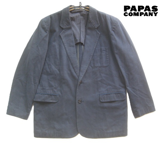 - 極上日本製!!パパス Papas*定価5.5万 Pロゴ刺繍 コットン2つボタンジャケット M 紺ブレザー ネイビー