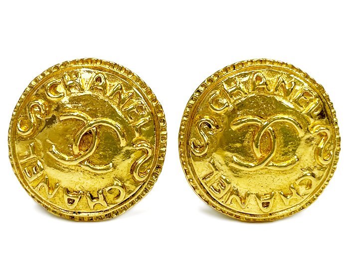 - CHANEL シャネル イヤリング 両耳 ペア クリップ式 ラウンド 丸形 円形 ココマーク CCマーク ロゴ 耳飾り ゴールドカラー ヴィンテージ