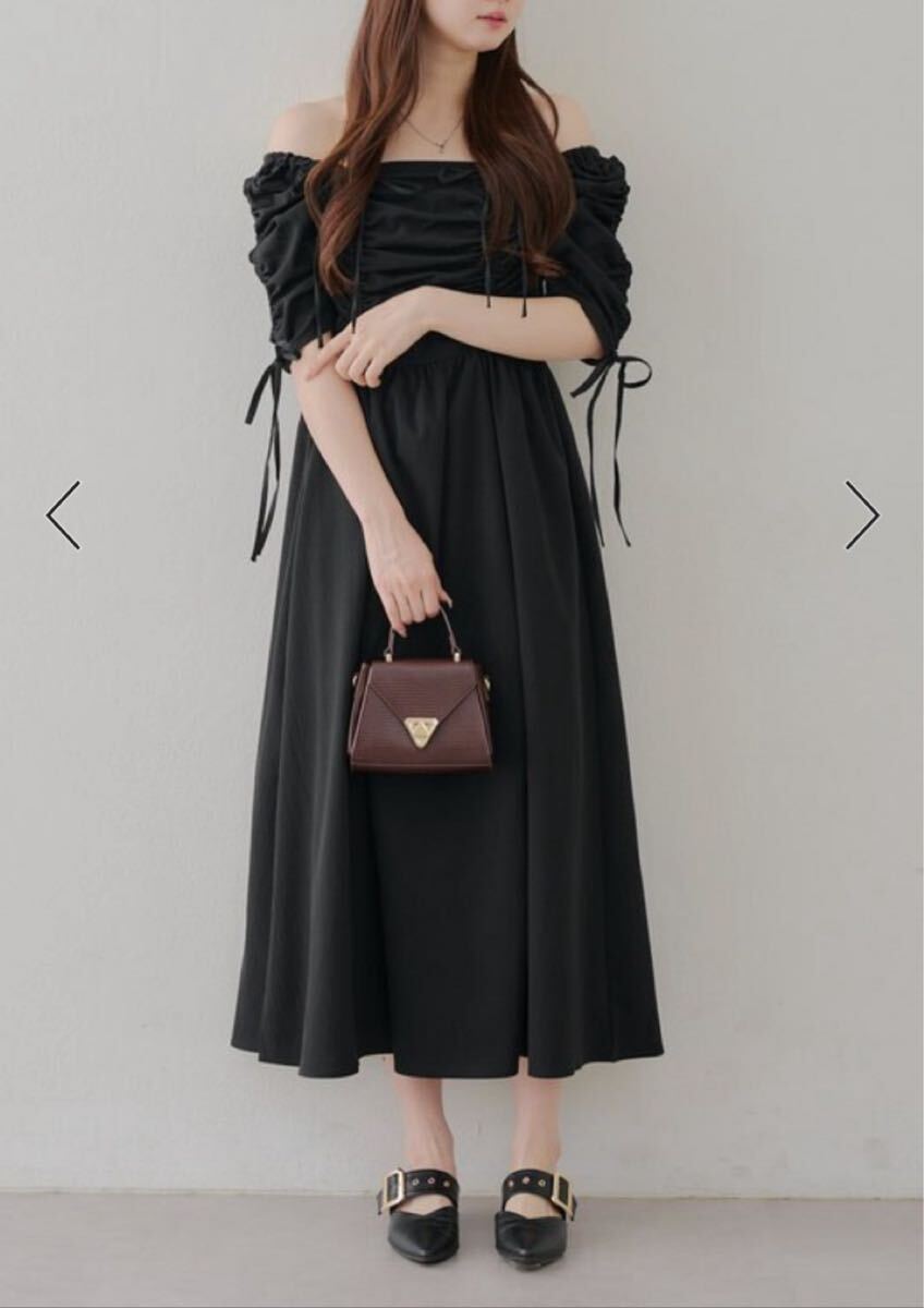 - ☆NICE CLAUP☆新品オフショルにもできちゃうドロストワンピ ブラック ナイスクラップ