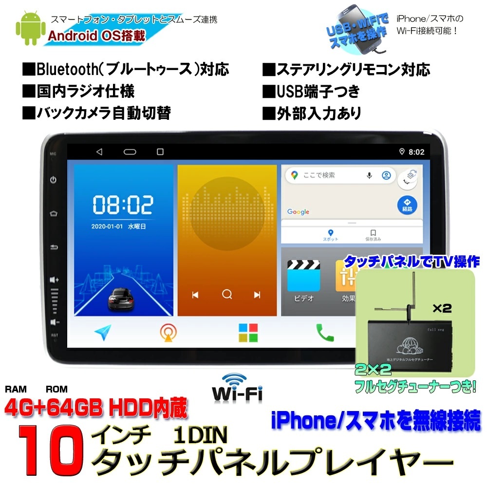- 瞬間起動 画面分割 アプリー記憶 アンドロイドカーナビ1DIN10インチタッチパネルAndroid10 4GB+64GB+地デジ2x2フルセグチューナー