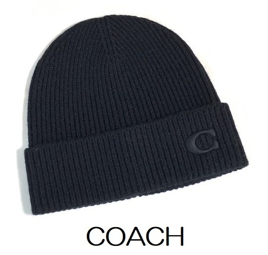 - 特価! 人気 COACH コーチ Cロゴ 刺繍 ニット帽 ビーニー 男女兼用 CU821 ブラック 新品本物