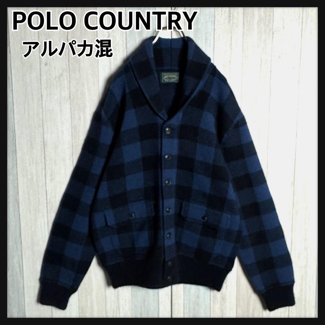 > 【未使用級・極美品】POLO COUNTRY RALPH LAUREN ポロカントリー ラルフローレン アルパカ混 バッファローチェック ブルゾン ブルー 青 M