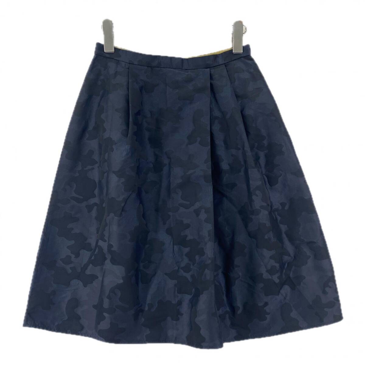 > INDIVI インディヴィ 総柄 タック フレア スカート size36/ネイビー×ブラック ゆうパケットOK