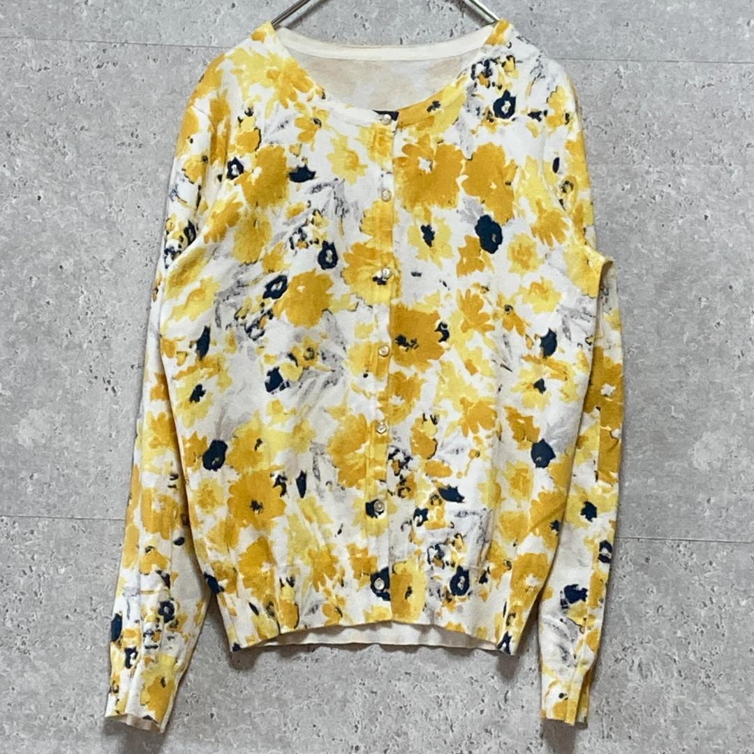 - スクロール(M)カーディガン*花柄*総柄*長袖*綿混*Uネック*大人キレイ目*黄