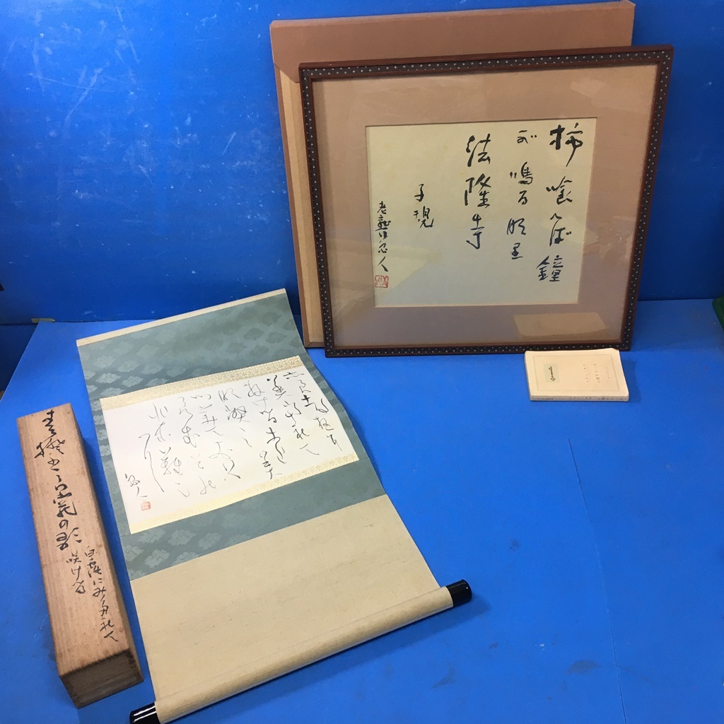 - kankando 津田青楓《真作》肉筆書2点!額装『正岡子規 柿食えば鐘が鳴るなり法隆寺』/軸装共箱『良寛 白露にみだれて咲ける女郎花摘みてお