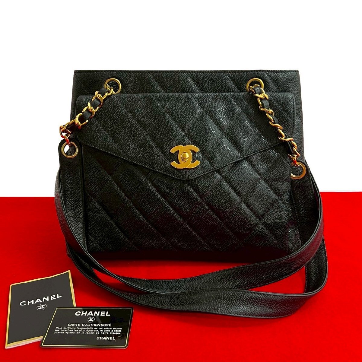 - 極 美品 カード シール有 4番台 CHANEL シャネル マトラッセ ココ キャビアスキン レザー チェーン セミ ショルダーバッグ ブラック 258-6