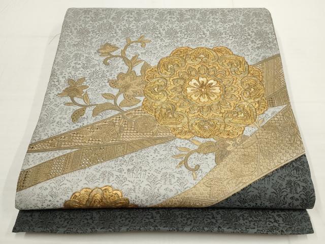 > 平和屋着物▼中国三大刺繍 汕頭刺繍 スワトウ刺繍 袋帯 螺鈿 大島紬地 吉祥花唐草文 金糸 正絹 逸品 AABA8507wj
