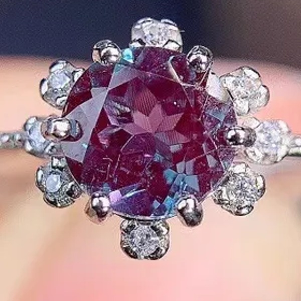 - 天然アレキサンドライトフラワーリング 6×6mm 鑑別付き 天然石 宝石 ギフト ◆最初の入札者様は開始価格で購入可能 Sp_9407