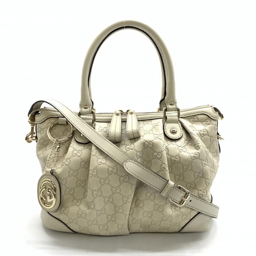 > GUCCI グッチ 247902 グッチシマ スーキー 2WAYショルダーバッグ ハンドバッグ アイボリー ホワイト系 レザー 管理RT44729