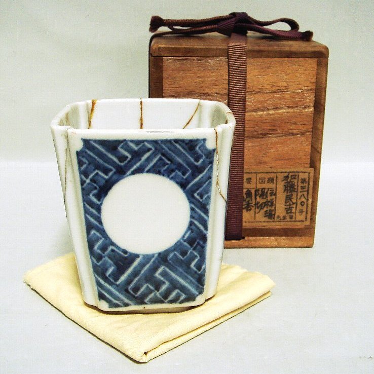 - Y101 隅切角香炉 箱付き 補五郎太夫祥瑞民吉製 飯野家所蔵 加藤民吉作とあります