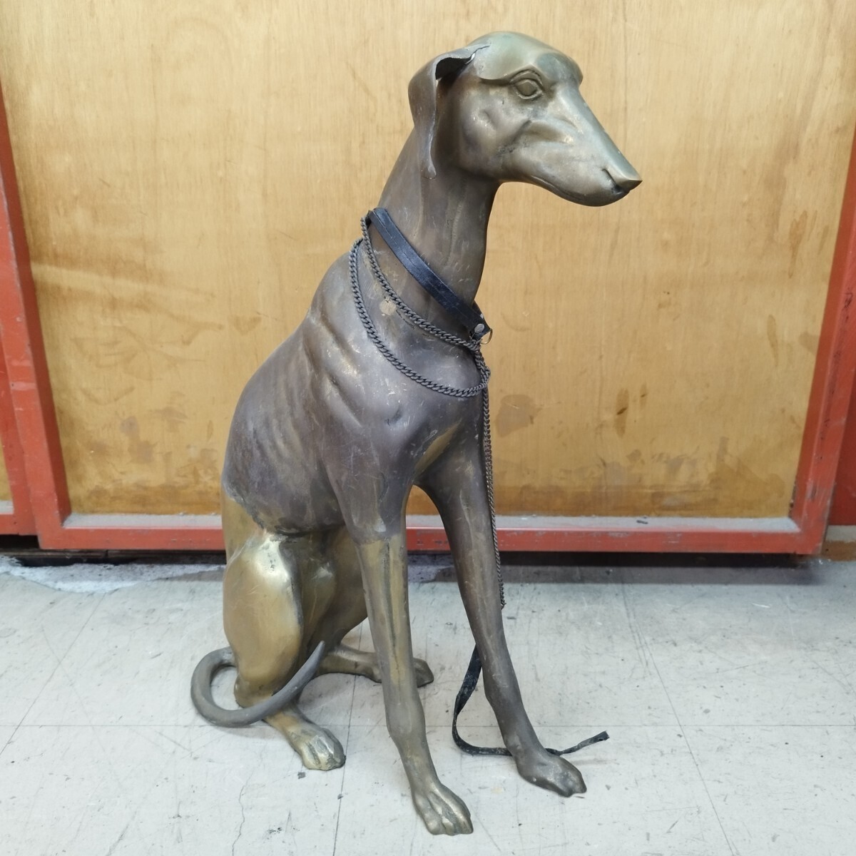 - 戸06a 【真鍮 洋犬 置物 高さ約57cm グレーハウンド スムースサルーキ ピンシャー ワイマラナー】 金属工芸 特大 インテリア