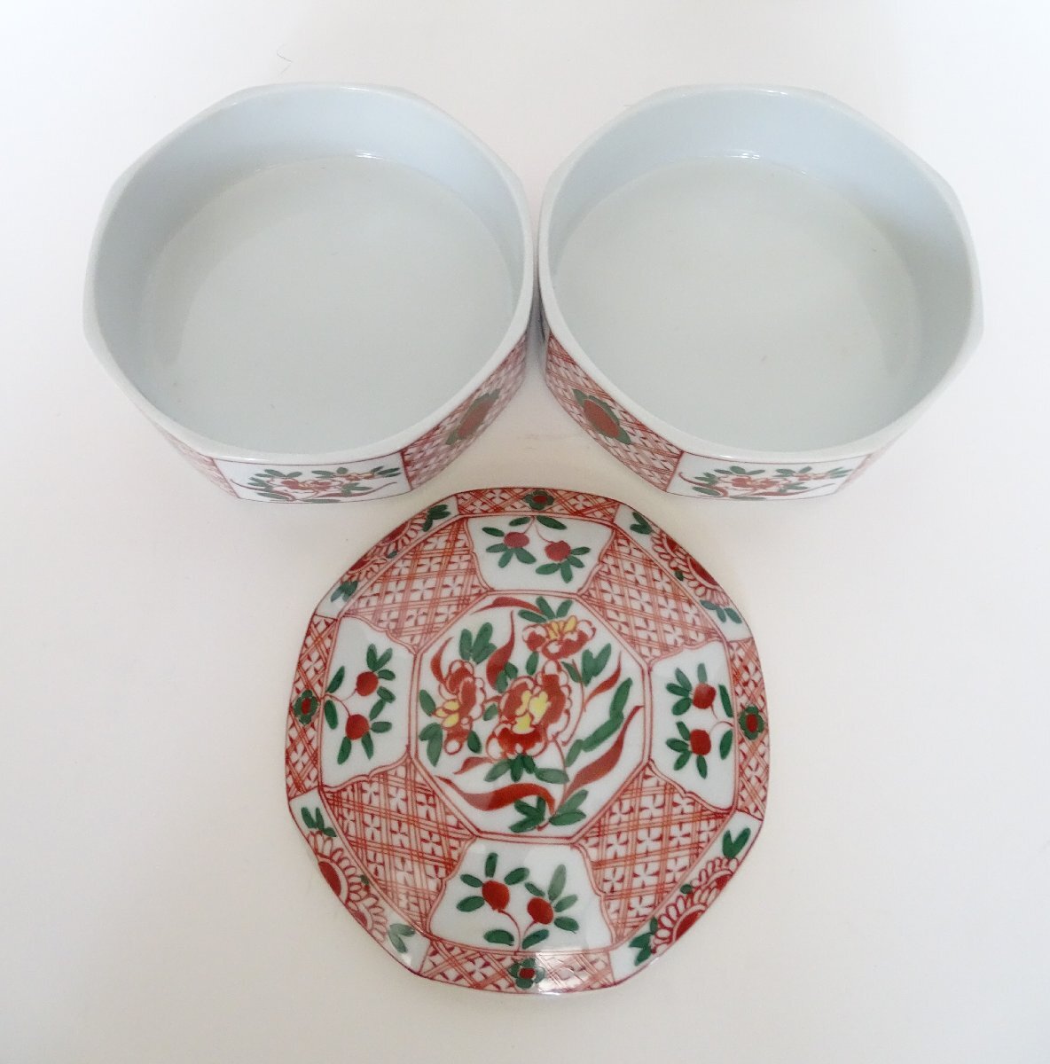 > ・品名: 赤絵二段重(蓋付き) ・技法: たち吉二段重い ・素材: 陶器 ・NO-R6-10-3.8