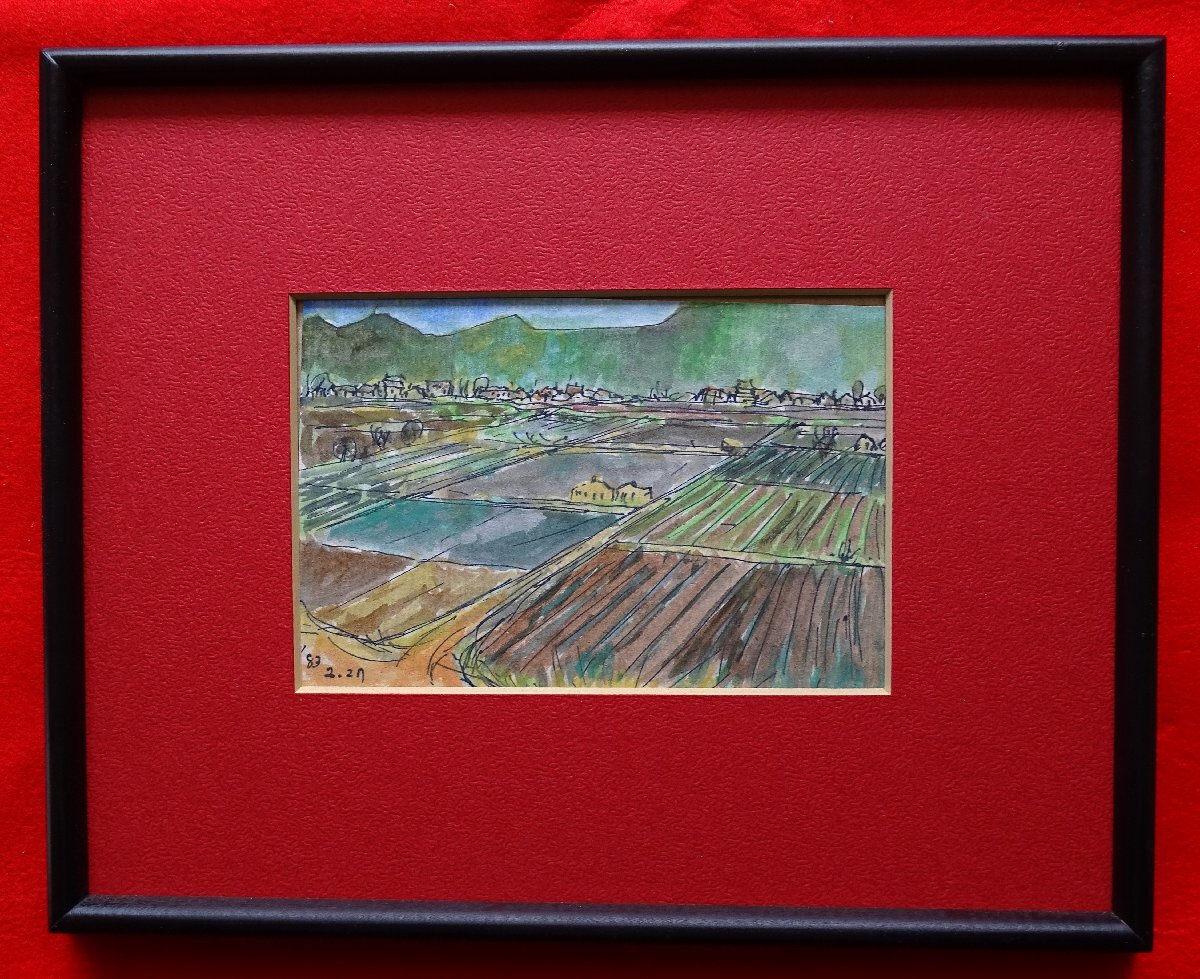 - ・作者: 坂本作 ・画題: 田園風景 ・技法: 水彩画 ・NO-R6-4-3.8
