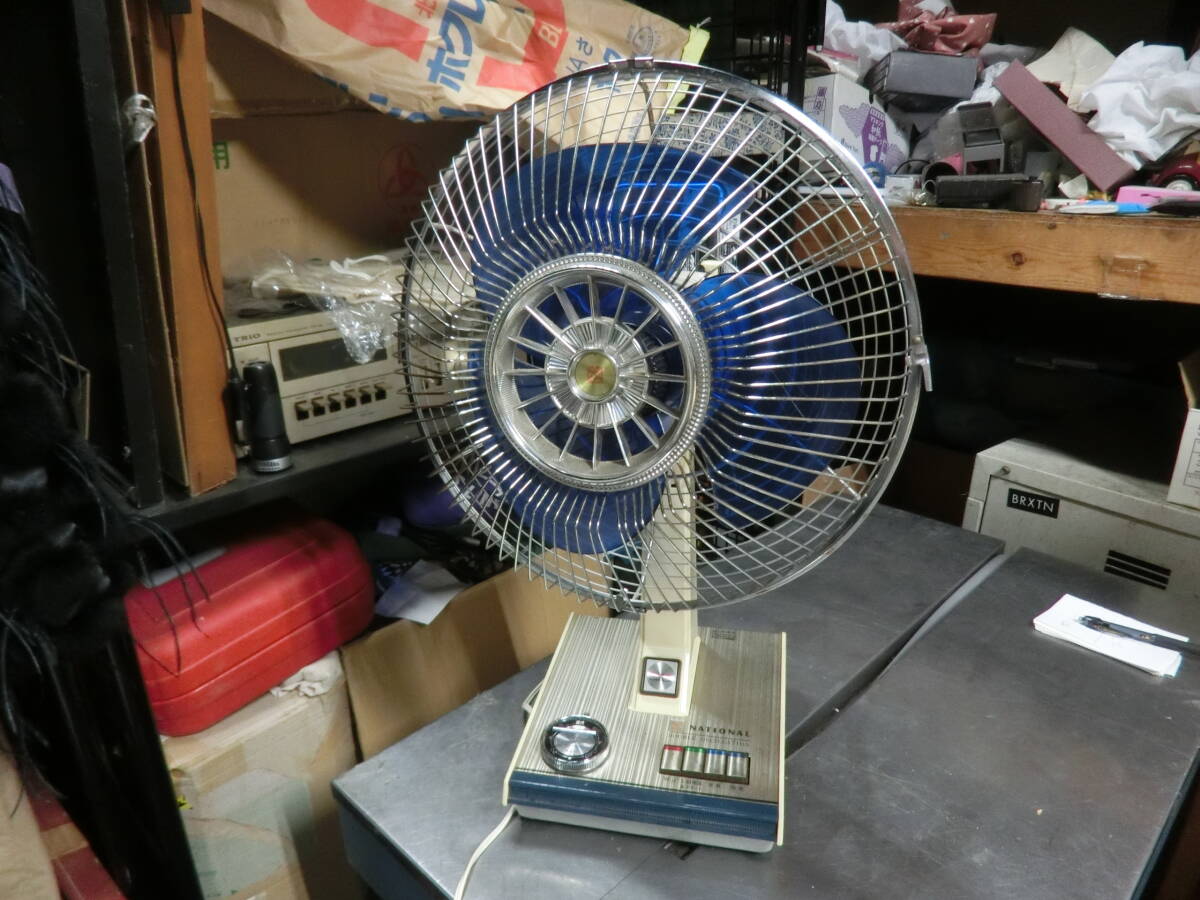 > 昭和レトロ ナショナル NATIONAL F-30FB ブルー 3枚羽 30㎝ 首振り 扇風機 超微風 涼風 強風 日本 当時物 ヴィンテージ レア