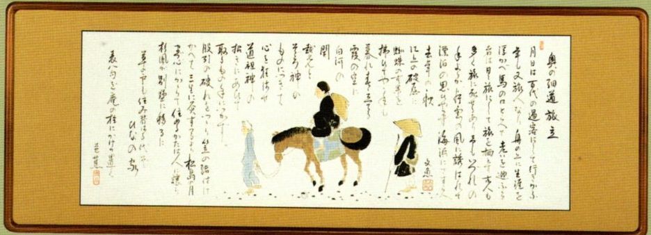 > ・作者名: 中谷 文魚 ・画題:「旅立」 ・技法: 欄間額 日本画(直筆)〈315〉(H1-R4-6-25-89.5)