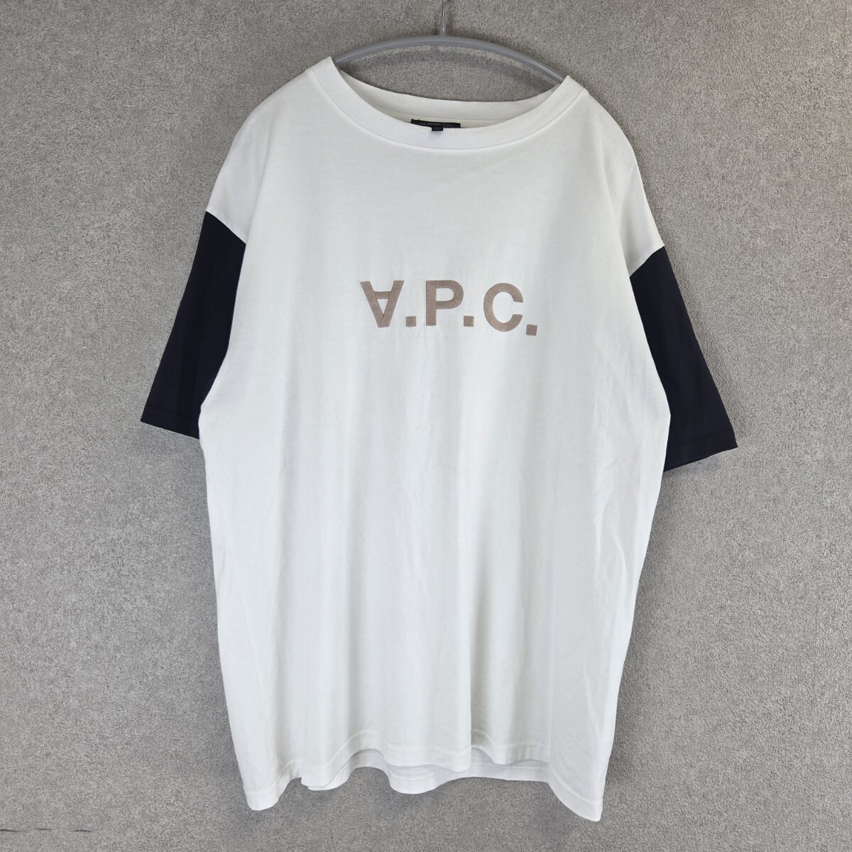 - 美品 23SS A.P.C. BEAMS LIGHTS 別注 VPC ロゴ 刺繍 袖切替 半袖 Tシャツ アーペーセー ビームス size L 反転 ホワイト ブラック 白 黒
