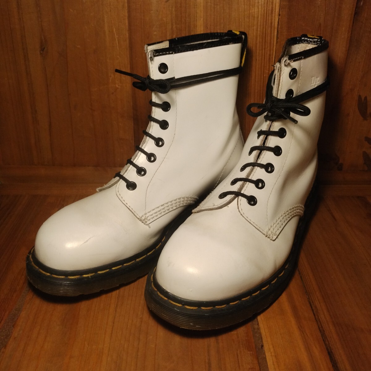 - 入手困難 廃盤 正規品 ドクターマーチン Dr.Martens 8ホールブーツ UK8 ホワイト 白 oi PUNK SKINS ハードコア CRUST クラスト バイカー