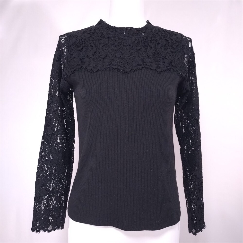 - AS KNOW AS PINKY アズノゥアズ ピンキー 首元レース 切り替え カットソー 長袖 リブ ハイネック