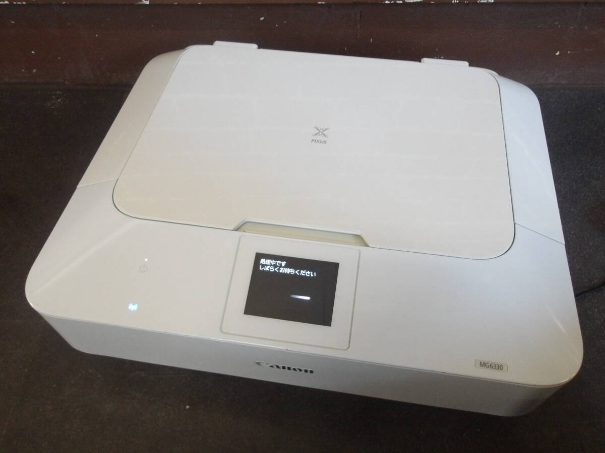 - 【4287】通電確認済み Canon キャノン インクジェットプリンター MG6330 ホワイト 箱 説明書等無し 本体のみ 印刷 コピー プリンター