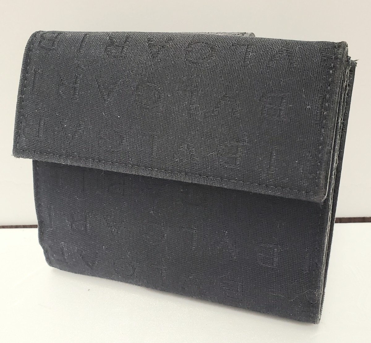 - MI★1円~ 【保管品】 BVLGARI ロゴマニア コンパクトウォレット 二つ折り財布 キャンパス生地 ブルガリ ブラック スレ有り