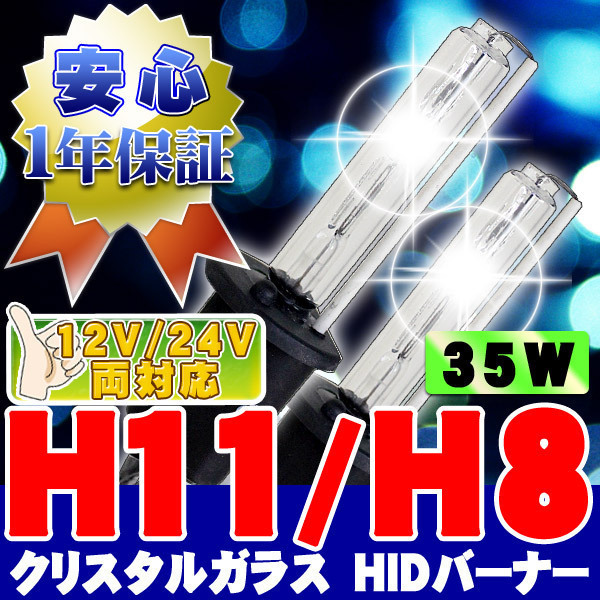 > HIDバーナー 35W H11/H8/H9 6000K 12V/24V 交換用左右セット UVカット加工 石英ガラス ヘッドライト/フォグランプ