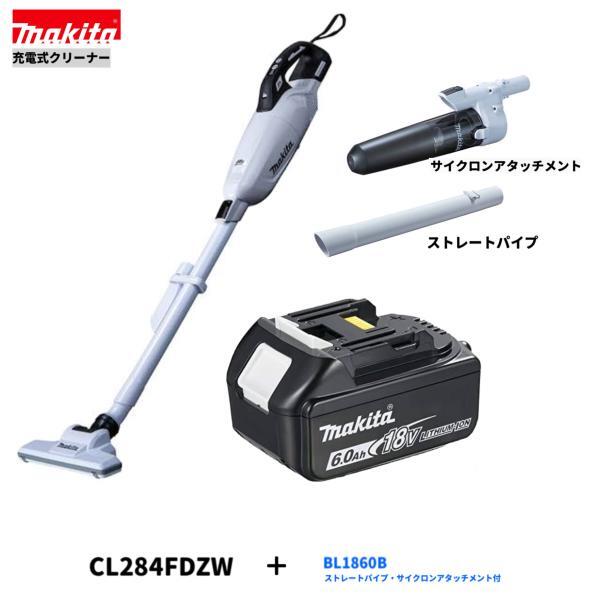 > マキタ CL284FDZW + BL1860B + サイクロンアタッチメントA-72687 + ストレートパイプ459481-9 18V充電式クリーナ[カプセル式]充電器別売◇