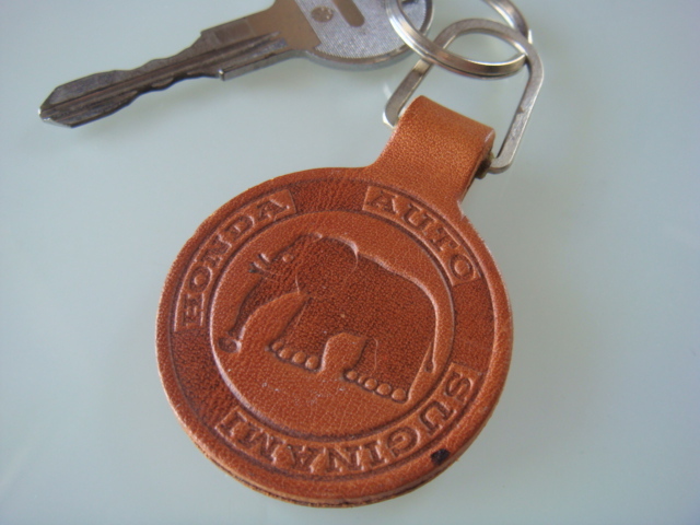 - ◆ HONDA AUTO 本革 古いホンダディーラーのキーホルダー 80s 90s 杉並 ホンダオート レザー製 直径44mm 象マーク 旧車にいかが 定形外180