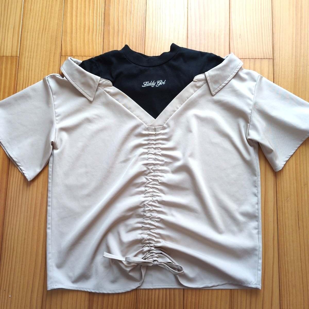 - ZIDDY(ジディー)@べべ*レイヤード風カットソー 150 半袖 キャメル ブラック シャーリング調節リボン
