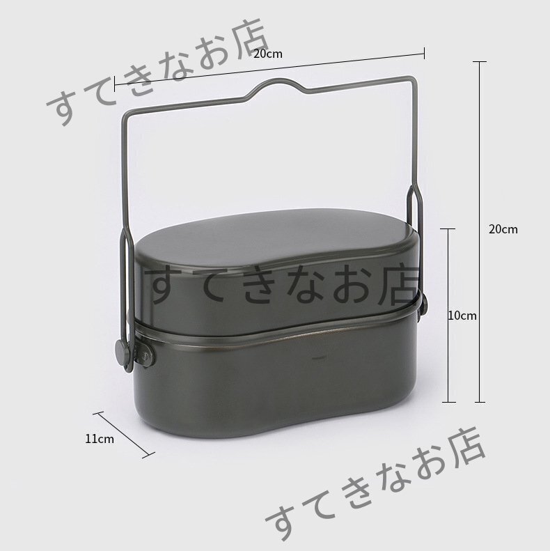 - 自衛隊飯盒 2合 野営用 ショート吊り手付き 戦闘飯盒 炊飯 ショート吊り手つき