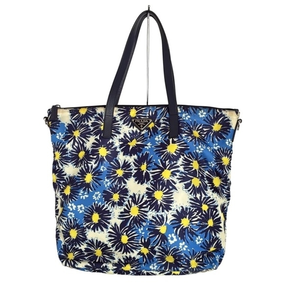 > プラダ PRADA ハンドバッグ - レザー ブルー×ネイビー×アイボリー 花柄 バッグ