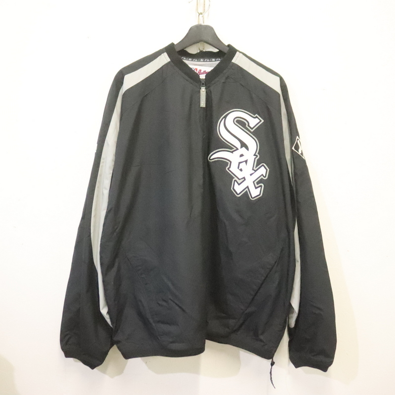 > L66 2000年代製 majestic プルオーバージャケット■00s 表記XLサイズ 黒 ブラック MLB ホワイトソックス ナイロン ワッペン アメカジ