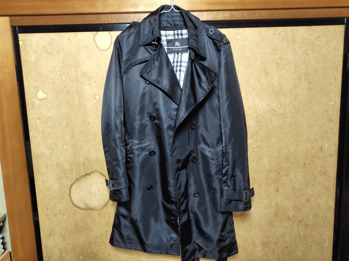 > バーバリーブラックレーベル BURBERRY BLACK LABEL L 3 中古古着 ホースマーク LONDON ロンドン ロングコート ノバチェック ジャケット 黒