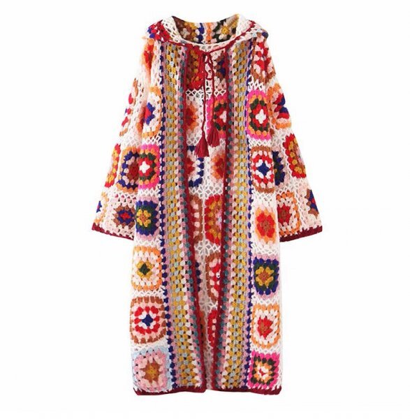 - yh セール ニット セーター ロングカーディガン フード コート アウターパッチワーク風 フリーサイズ 暖かい 柔らかい 肌触り抜群