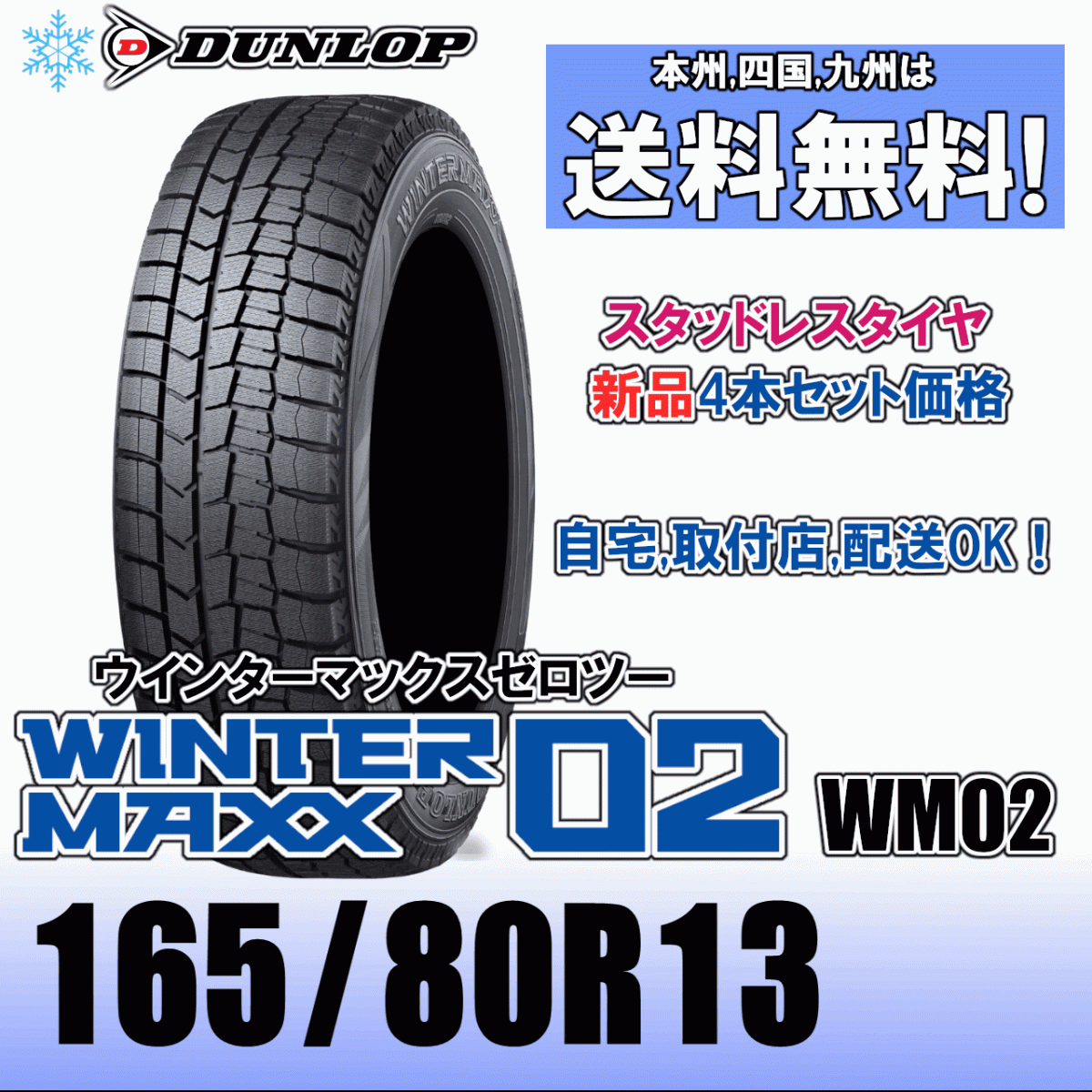 > 165/80R13 83Q 「送料無料」4本価格 ダンロップ ウインターマックス02 WM02 スタッドレスタイヤ 新品 正規品