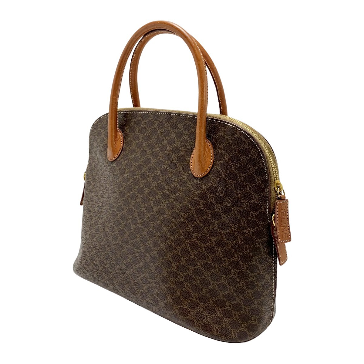 > ☆☆ CELINE セリーヌ マカダム柄 PVCxレザー ヴィンテージ M95 ブラウン ハンドバッグ ストラップ無 やや傷や汚れあり