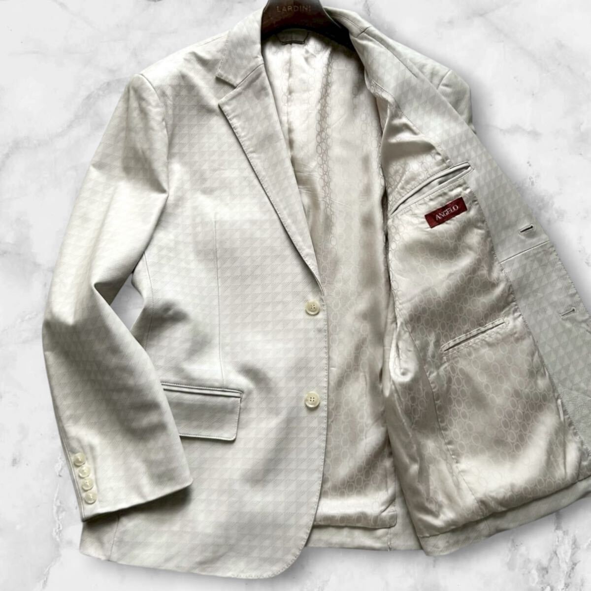 > 極美品/LLサイズ●ANGELO アンジェロ ラムレザー テーラードジャケット 極上トロトロの羊革◎総柄 革ジャン ホワイト 白 メンズ 50