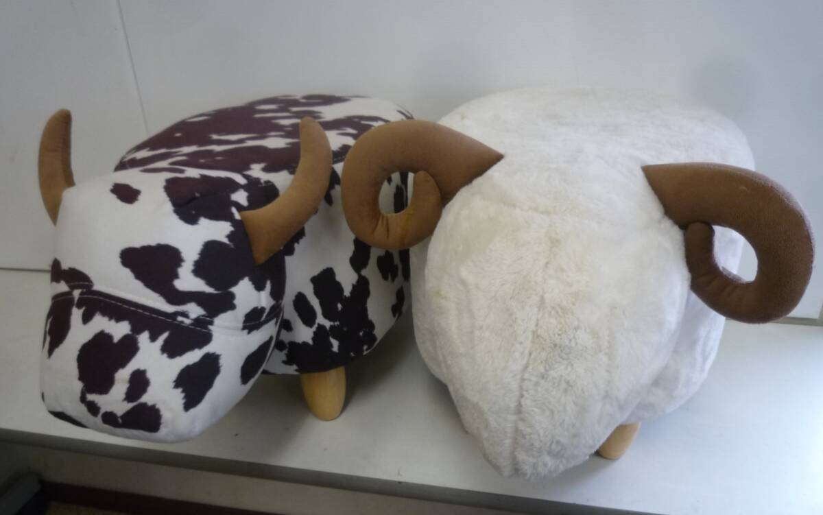- 【7-9-25-2Ta★】 アニマルスツール ひつじ うし 2点セット 動物 椅子